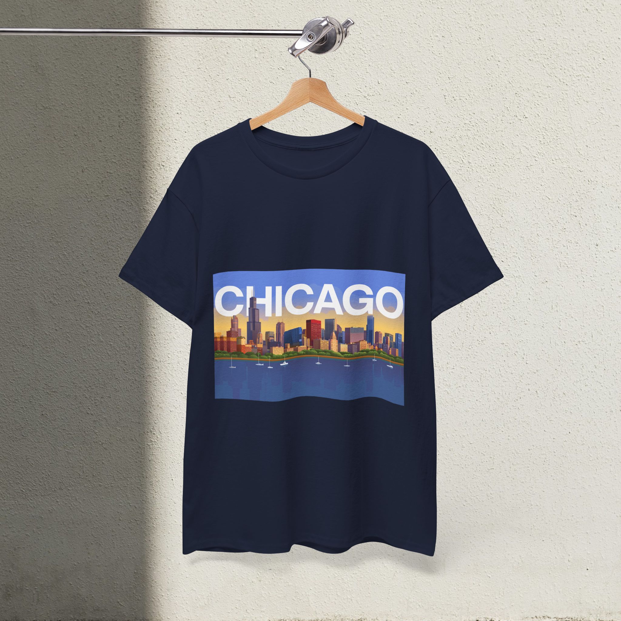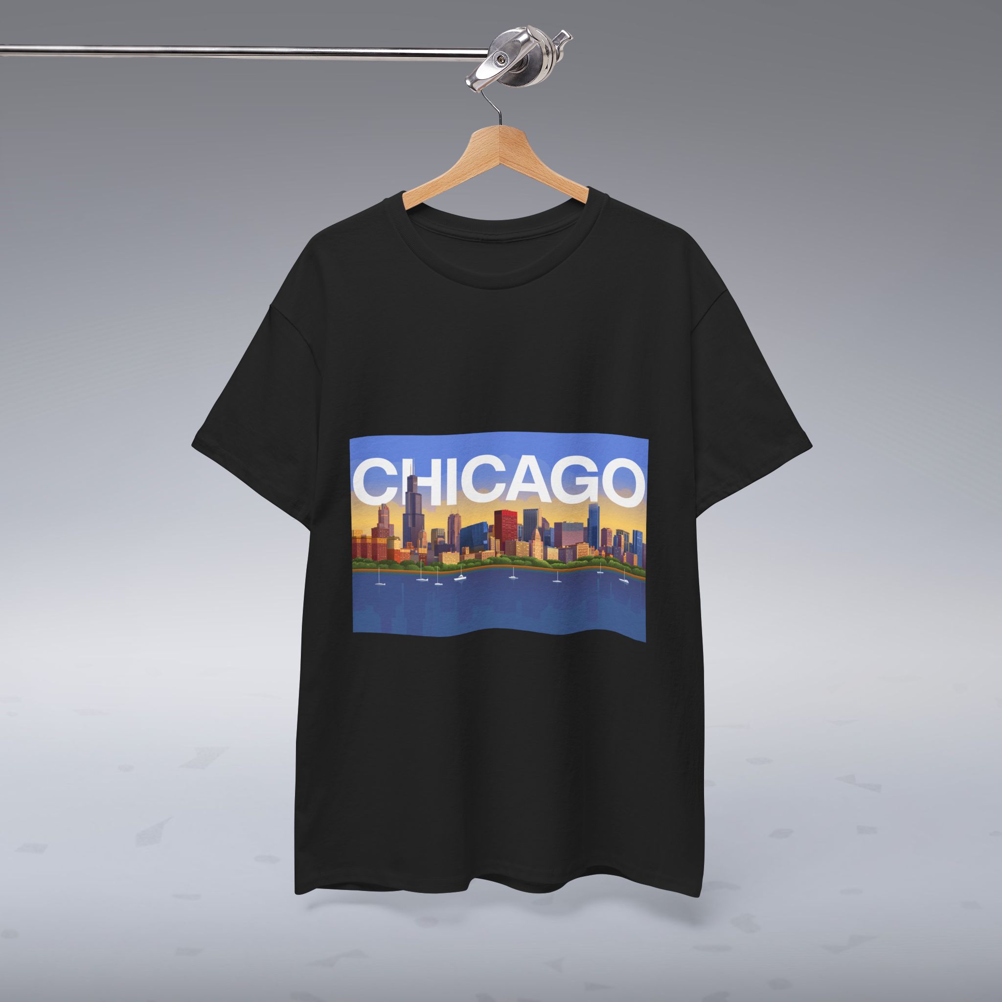 Chicago Skyline Unisex Heavy Cotton Tee, Cool Graphic T-Shirt, Casual Wear, Visitor Souvenir, Gift Idea, Fashion Statement