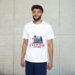 Wear the city with quiet confidence. This lightweight sports jersey carries a vibrant skyline print across chest and back — skyscrapers, a palm, and iconic silhouettes rendered in crisp blues and warm accents. It breathes and wicks moisture during long runs, pickup games, or travel days, and the ribbed collar and armholes keep the fit tidy as you move. The fabric feels weightless against the skin, letting the design stand out while you stay cool and comfortable. Slip it on for neighborhood drills, weekend tournaments, or when you want a casual layer that nods to urban life without shouting. The assembled-in-USA construction and printed care label keep care simple and straightforward.